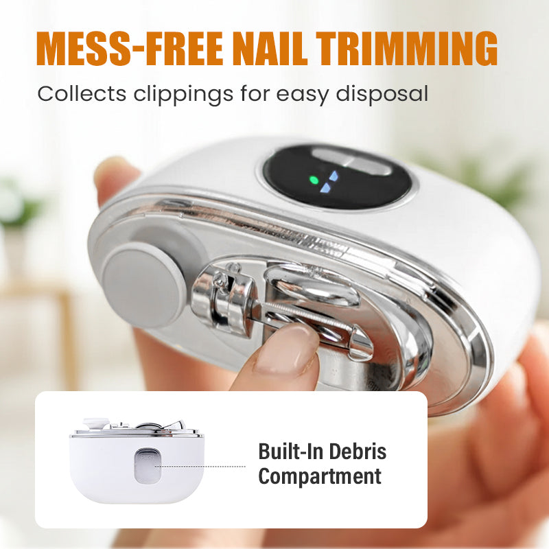INTEGROVANÁ ZÁSOBNÍK NA NECHTY: Počas používania automaticky zbiera odrezky nechtov a zabraňuje tak neporiadku. Po manikúre stačí vyprázdniť vstavanú nádobku na rýchle a hygienické vyčistenie, aby bol váš priestor vždy uprataný a čistý.