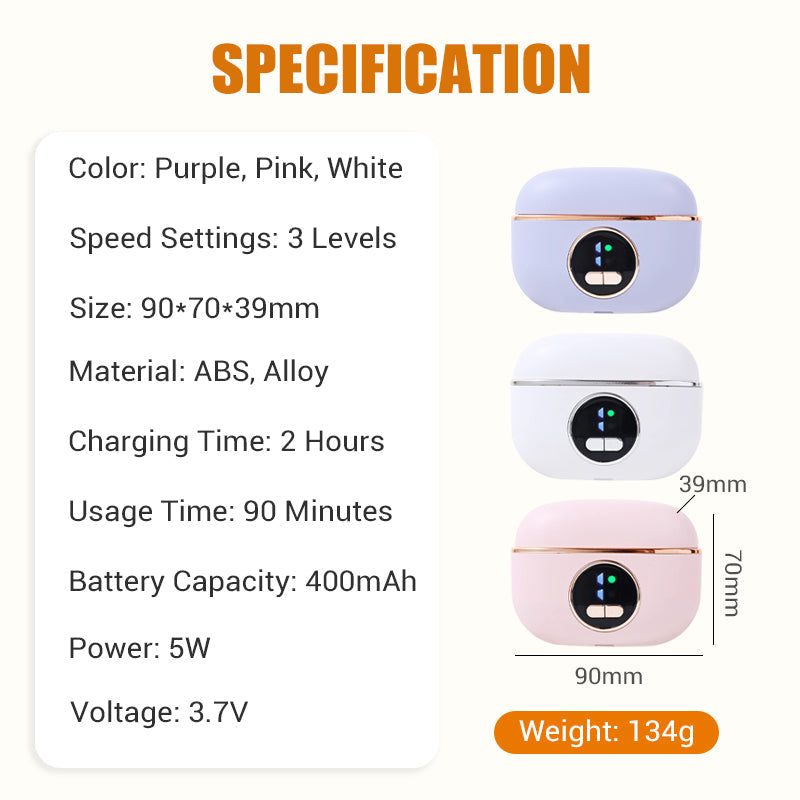 KOMPAKTNÉ A NABÍJACIE: Vďaka ľahkej, prenosnej konštrukcii a batérii s vysokou kapacitou je ideálny pre použitie doma aj na cestách. Po jedinom nabití si môžete užiť až 90 minút bezdrôtovej prevádzky pre pohodlnú starostlivosť o nechty kdekoľvek.